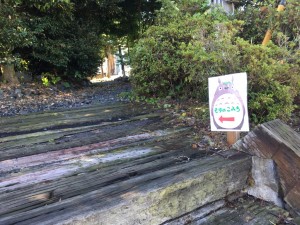 トラックなどの通行がありますので駐車場からすぐの階段を上って